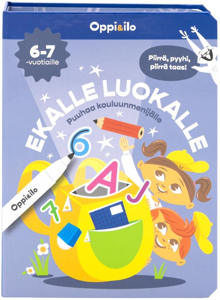 Monipuoliset kortit koulutiensä aloittavalle! Innostavissa tehtävissä harjoitellaan kirjaimia ja lyhyitä sanoja, kellonaikoja ja numeroita, ratkaistaan päättelytehtäviä sekä opitaan kaveritaitoja ja tunnetaitoja. Kirja sisältää 50 kaksipuolista korttia ja poispyyhittävän tussin, jolla tehtävät voi tehdä uudelleen ja uudelleen!