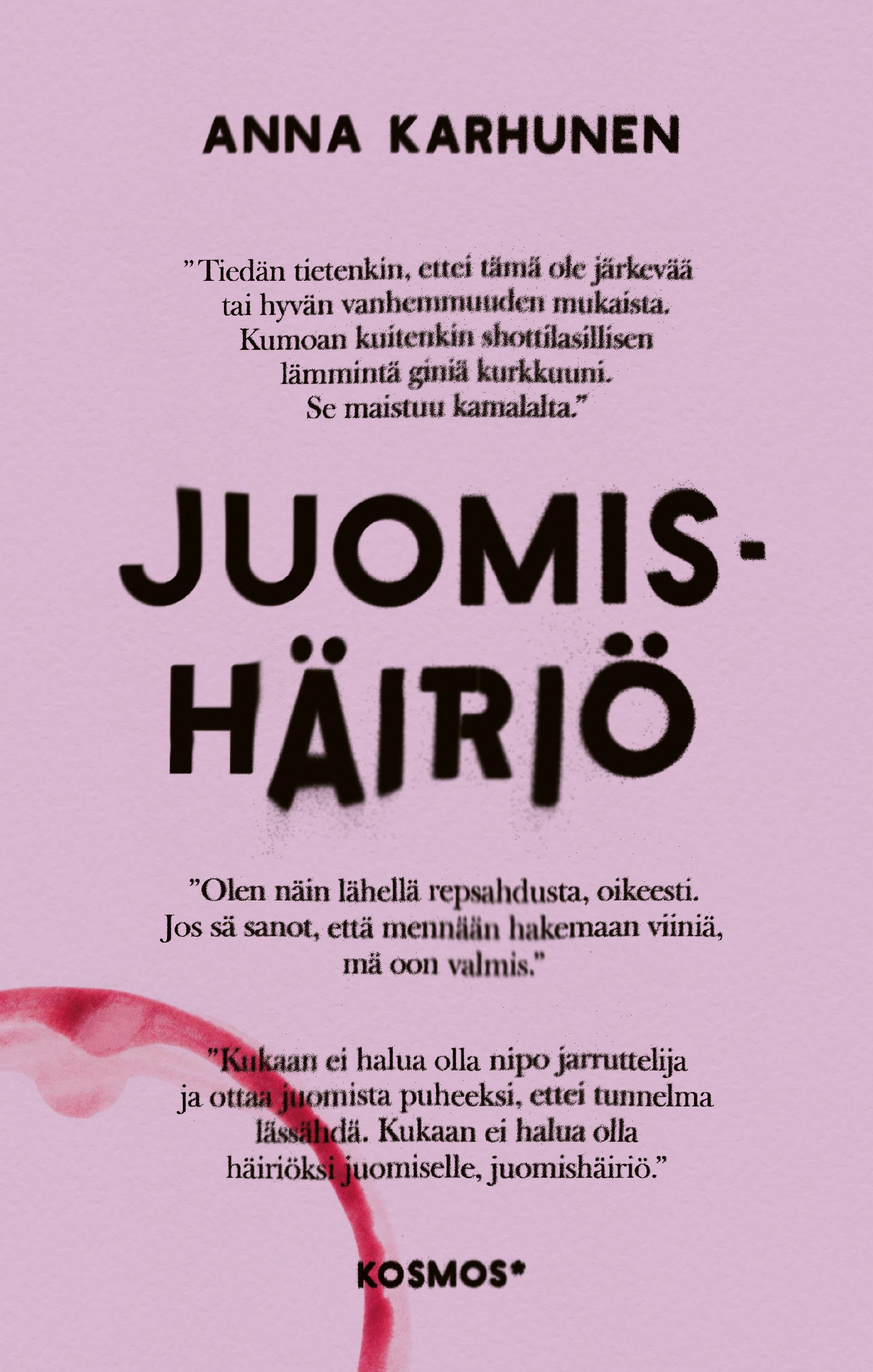Juomishäiriö yhdistää Karhusen omaa kokemusta, vertaistarinoita ja asiantuntijatietoa naisten alkoholinkäyttöön. Mistä winemom-ilmiössä on kyse ja miten kohtuukäyttökin voi äityä ongelmaksi?