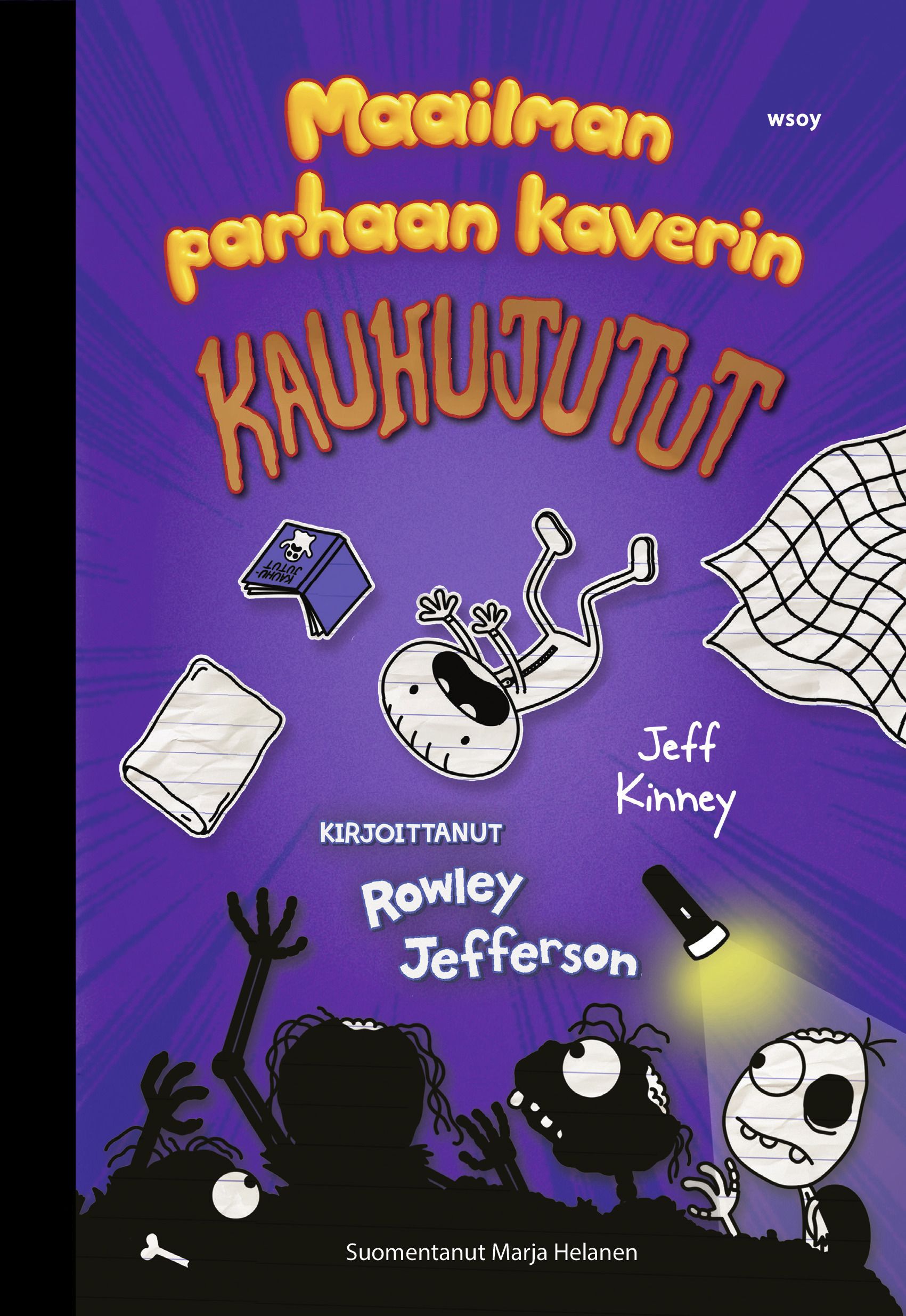 Tartu taskulamppuun, piiloudu peiton alle ja sukella Rowley Jeffersonin vinksahtaneeseen mielikuvitusmaailmaan. Maailman parhaan kaverin kauhujutuissa vilisee zombeja, vampyyrejä, kummituksia ja vaikka mitä outoja olentoja. Rowleyn tarinoista saa kunnon naurut, mutta varo vain – näitä juttuja luettuaan voi tehdä mieli nukkua valot päällä!