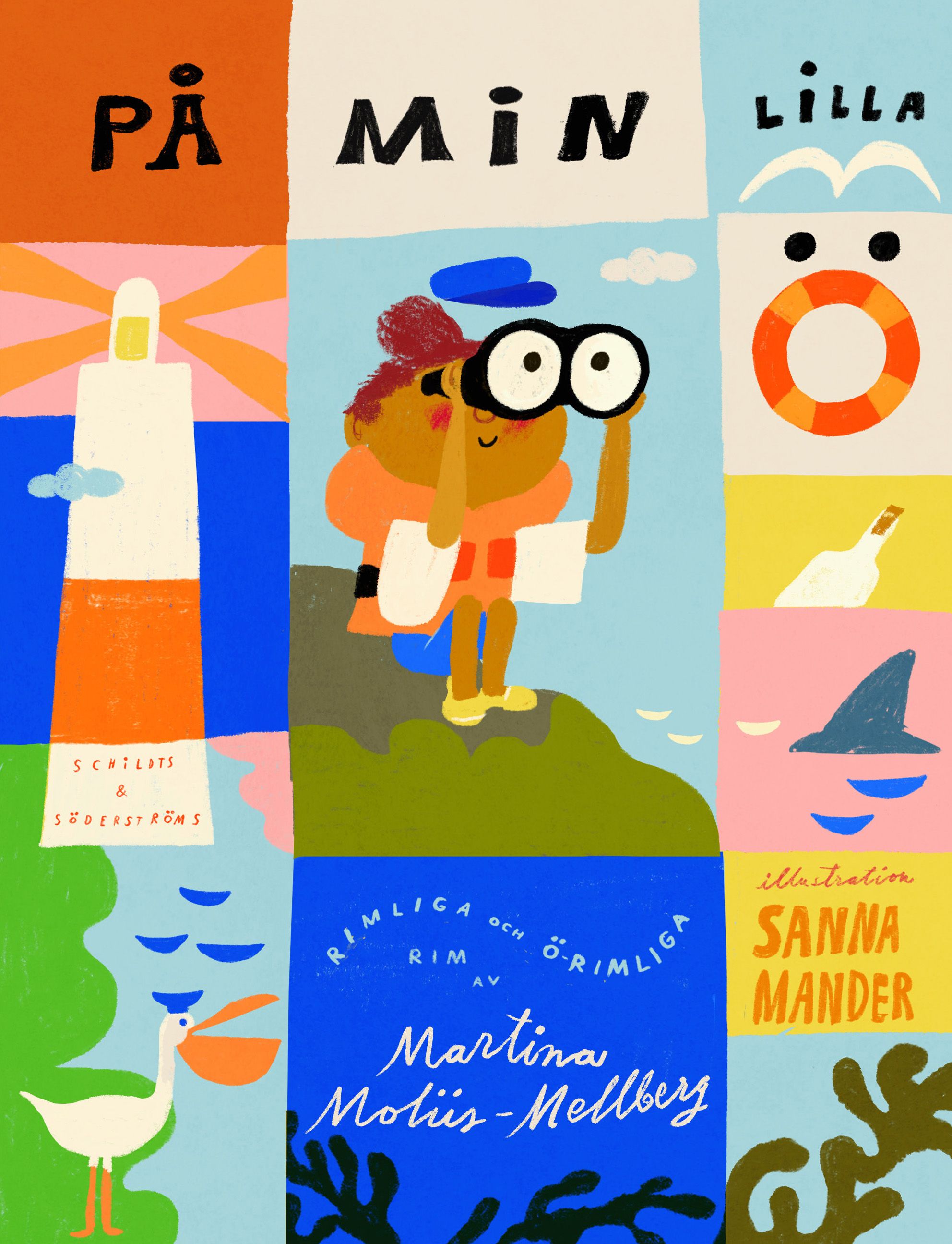 På min lilla ö bjuder in till fyndiga ordlekar och visuell upptäckarglädje. Det här är Martina Moliis-Mellbergs och Sanna Manders andra gemensamma bok.