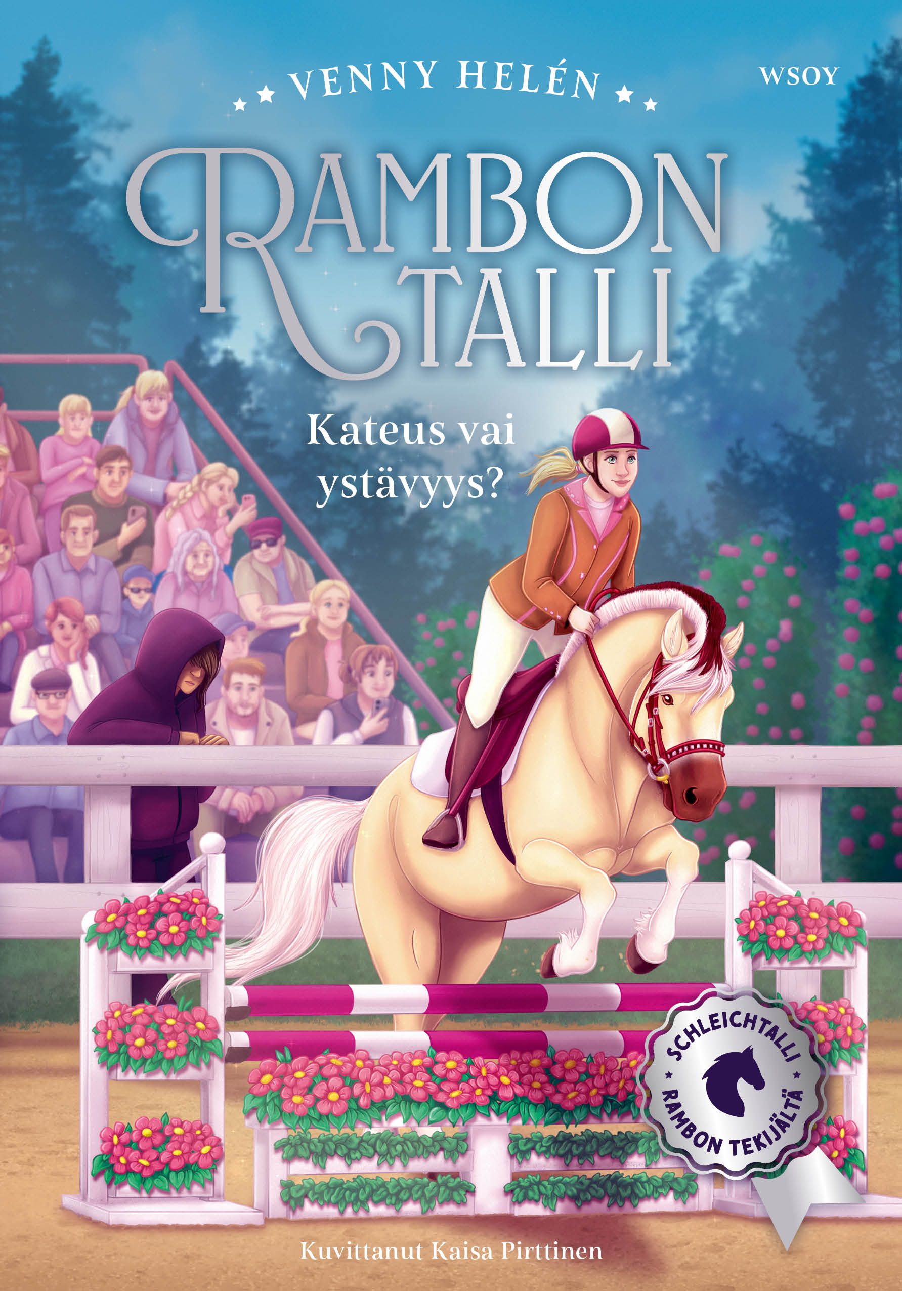 Rambon talli -kirjasarjan viidennessä osassa järjestetään maastoestekilpailut, jotka saavat hurjia käänteitä. Venny Helén tunnetaan myös huippusuosituista Schleichtalli Rambon youtube-videoista!