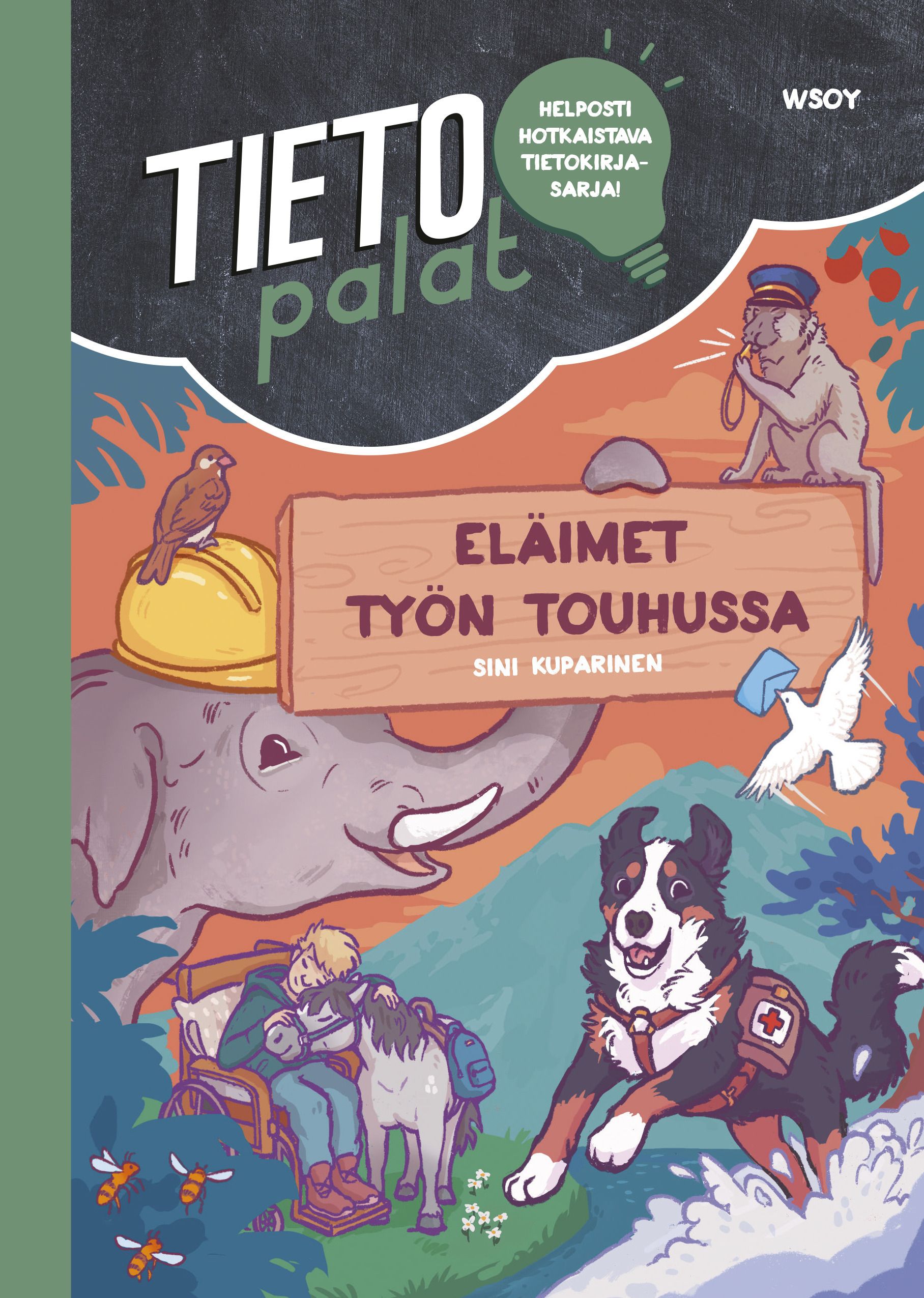 Eläimet ovat toimineet ihmisten tärkeinä yhteistyökumppaneina jo tuhansia vuosia: on tryffelipossuja, vahtilaamoja ja postikameleita. Tietopalat-sarjan helppolukuiset tekstit ja kauniit kuvat innoittavat oppimaan uutta ihmeellisestä maapallostamme ja sen kiehtovista asukeista.