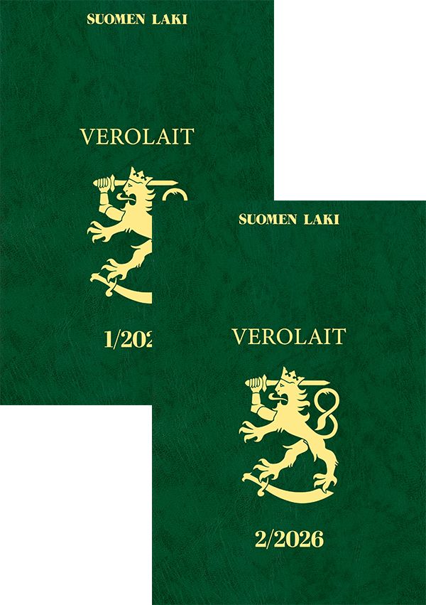Yhteishinta 229 € (sh. 324 €) sisältää Verolait 1/2026 (ilm. helmikuu 2026) ja Verolait 2/2026 (ilm. syyskuu 2026) -teokset.